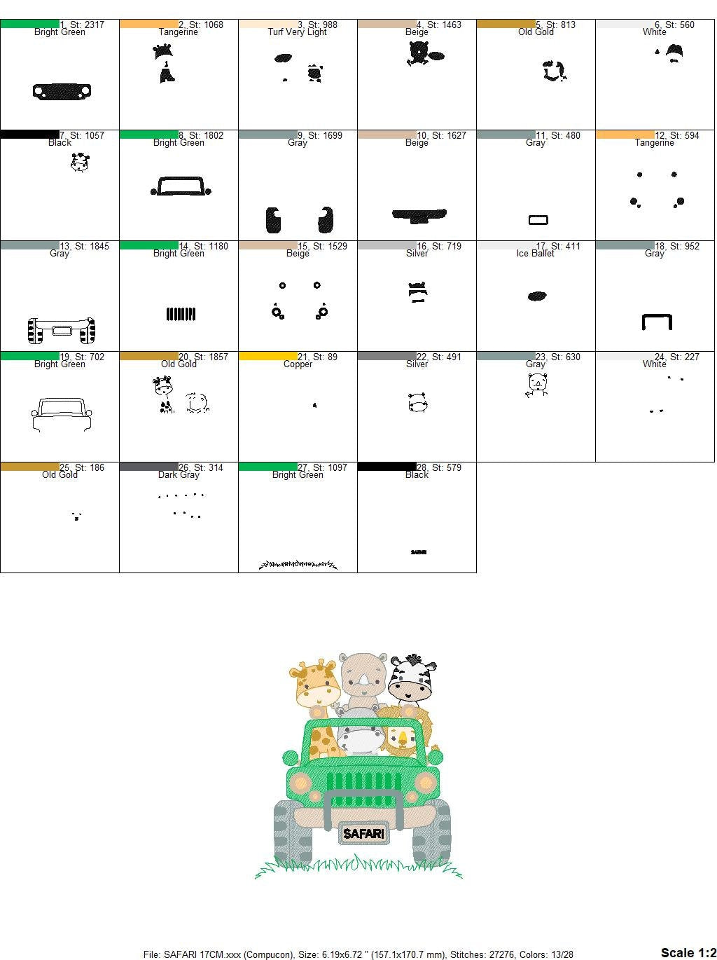Safari Car embroidery designs - Animals embroidery design machine embroidery pattern - Baby boy embroidery file - lion zebra giraffe hippo rhino