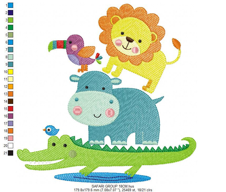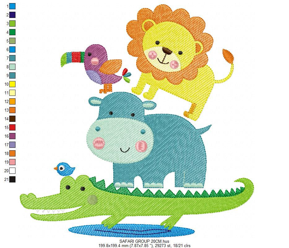 ( alligator embroidery, Toucan embroidery, hippo embroidery, Lion embroidery, safari embroidery )