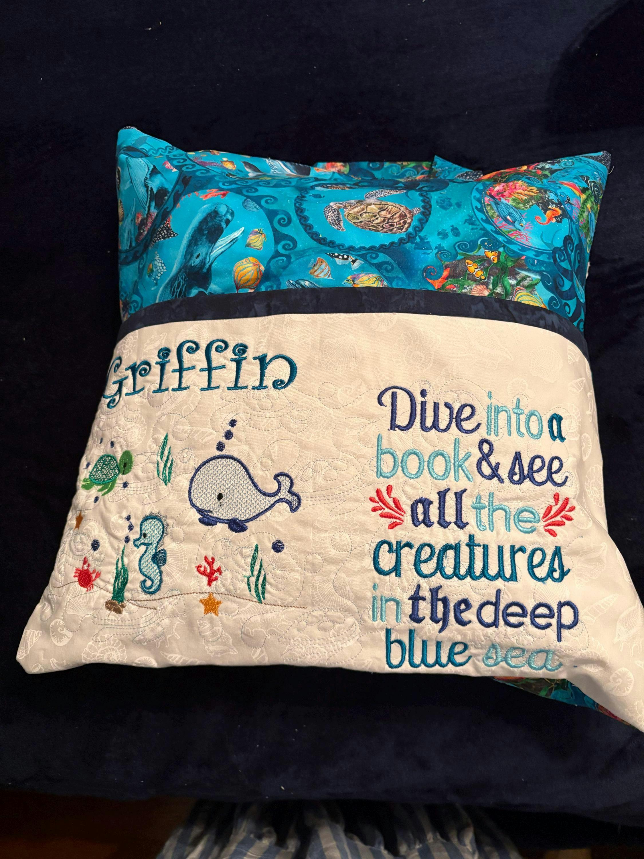 (Sea Animal embroidery, Whale embroidery, Seahorse embroidery, Turtle embroidery, rippled design )