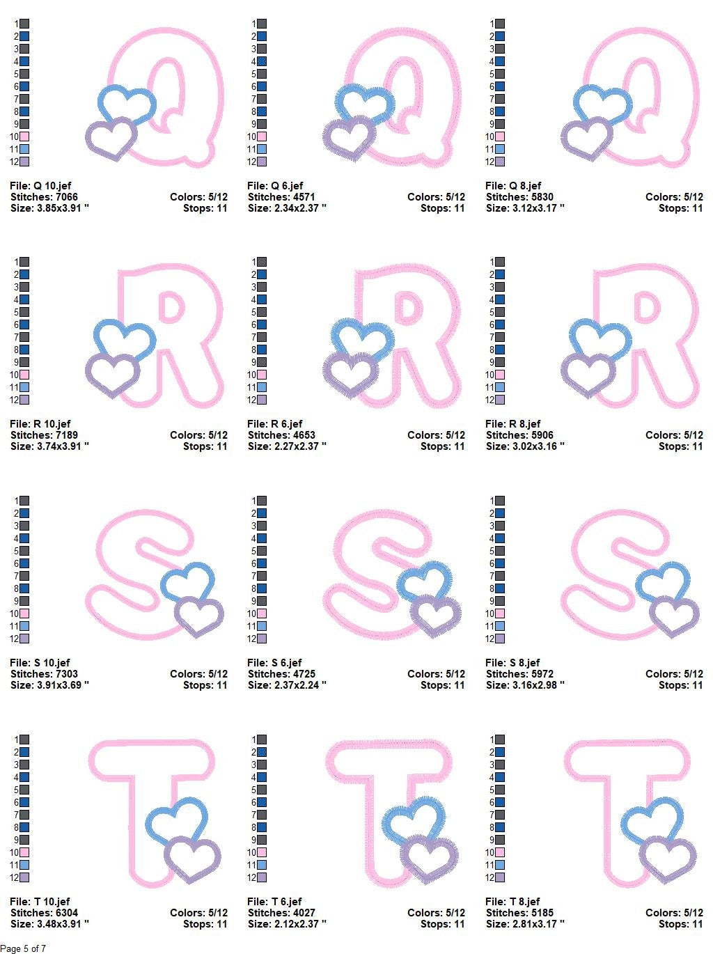There are 3 sizes included for each design, please check the information under the pictures for the precise sizes of each design, stitch count, color changes and etc.