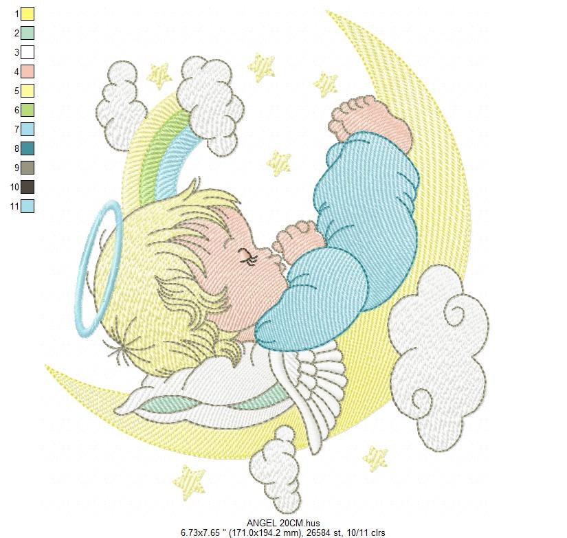 Angel embroidery designs - Boy in moon embroidery design machine embroidery pattern - Angel wings halo embroidery file - stars and rainbow
