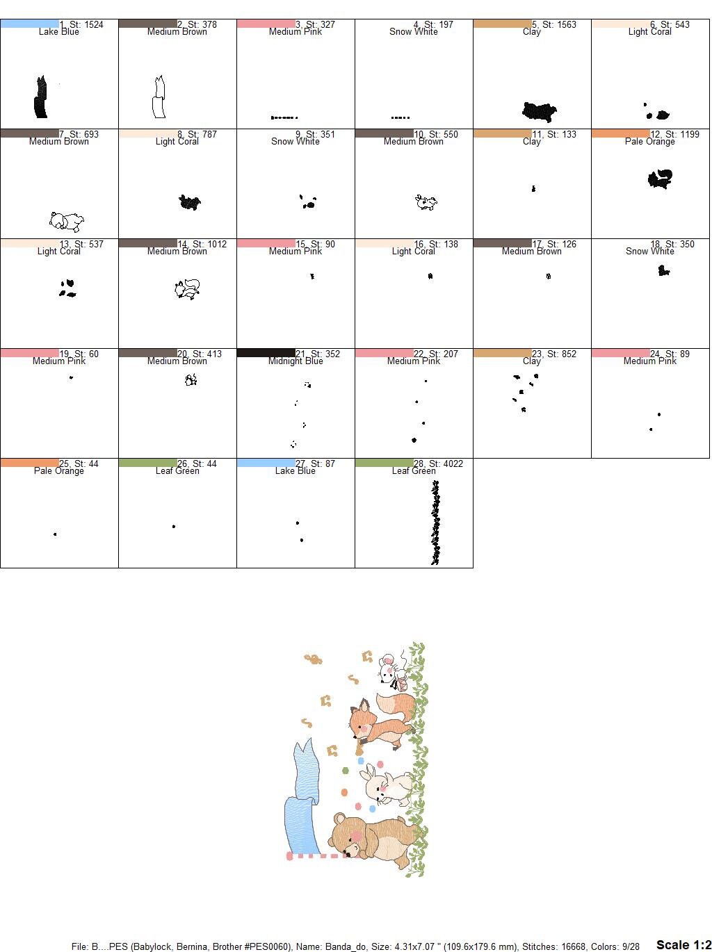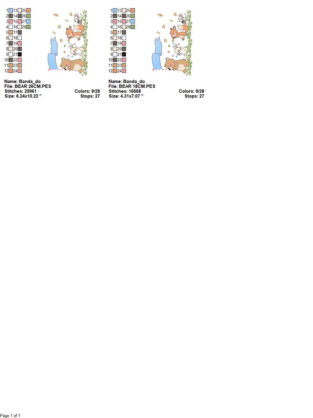 There are 2 sizes included for each design, please check the information under the pictures for the precise sizes of each design, stitch count, color changes and etc.