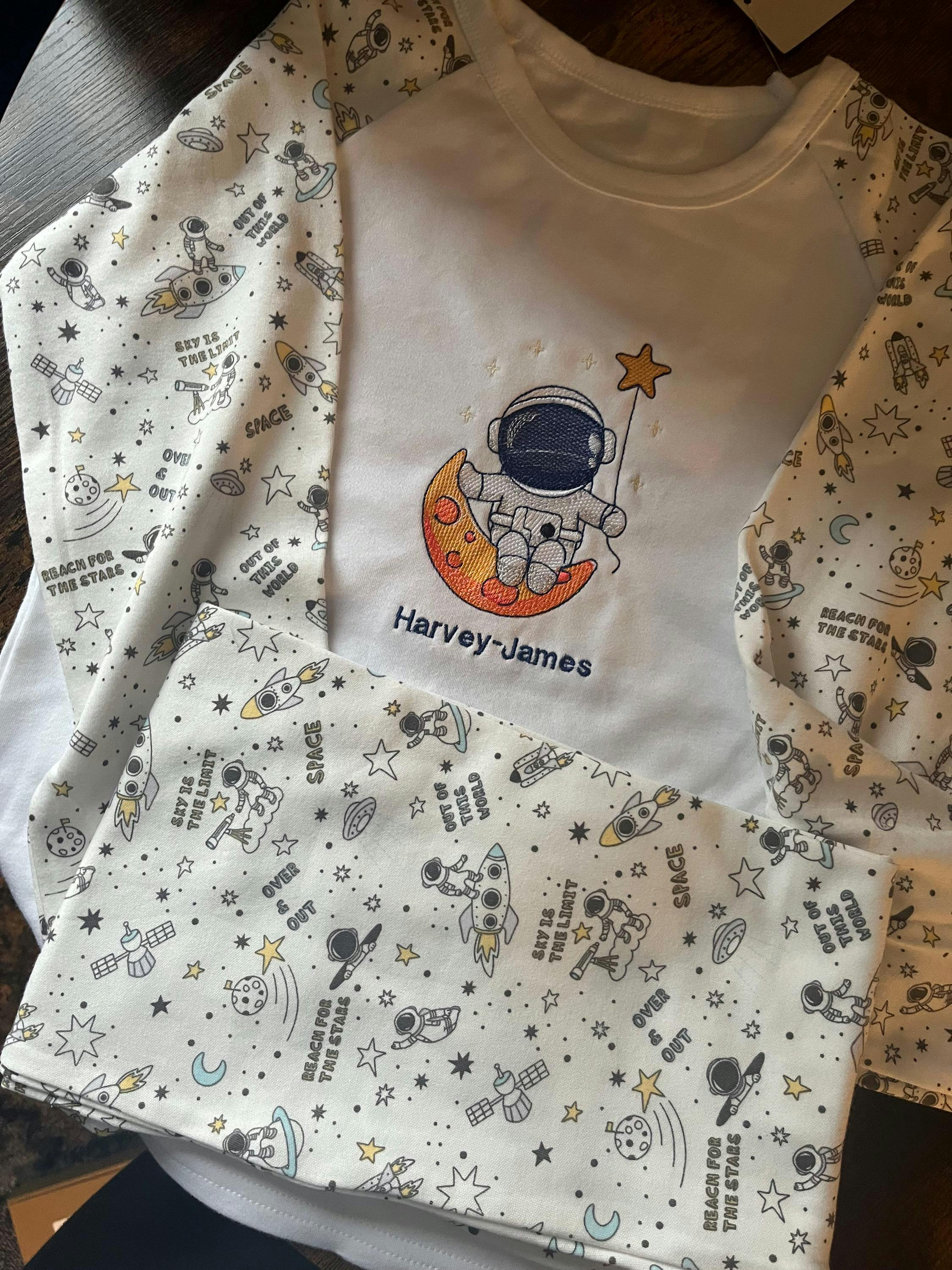Linda Exactly what I was looking for to go with some space themed pyjamas for my grandson. Stitched beautifully, my machine didn't pick up all the colours exactly, but this is quite normal. Thank you seller!