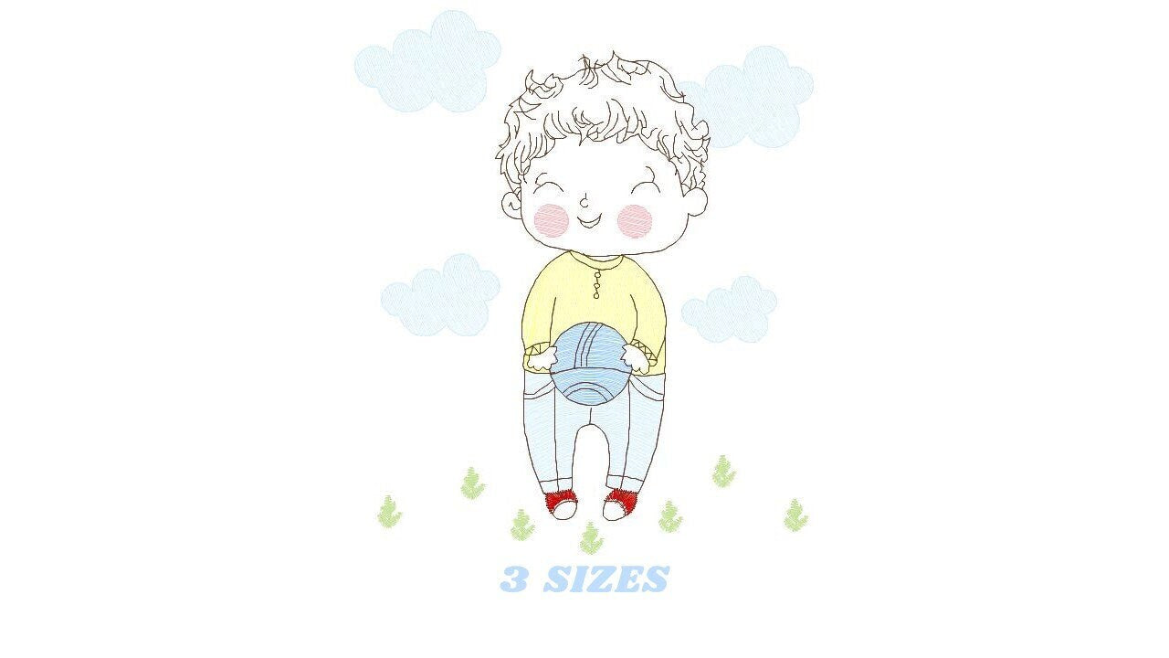 Baby boy embroidery designs - Soccer embroidery design machine embroidery file - Boy with ball embroidery - Soccer player instant download