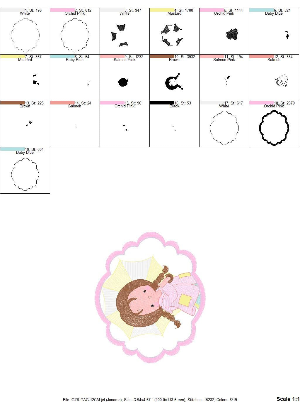 This is a digital download machine embroidery design of a GIRL, rippled design, instant download.