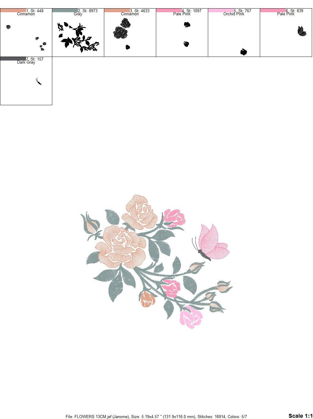 This is a digital download machine embroidery design of a BUTTERFLY WITH FLOWERS, fill stitch design, and instant download.