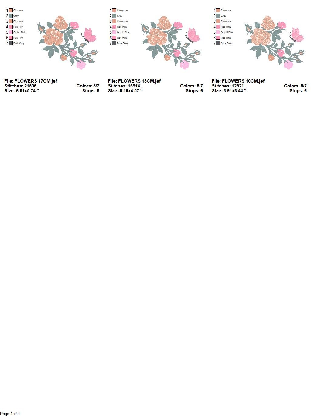 There are 3 sizes included for each design, please check the information under the pictures for the precise sizes of each design, stitch count, color changes and etc.