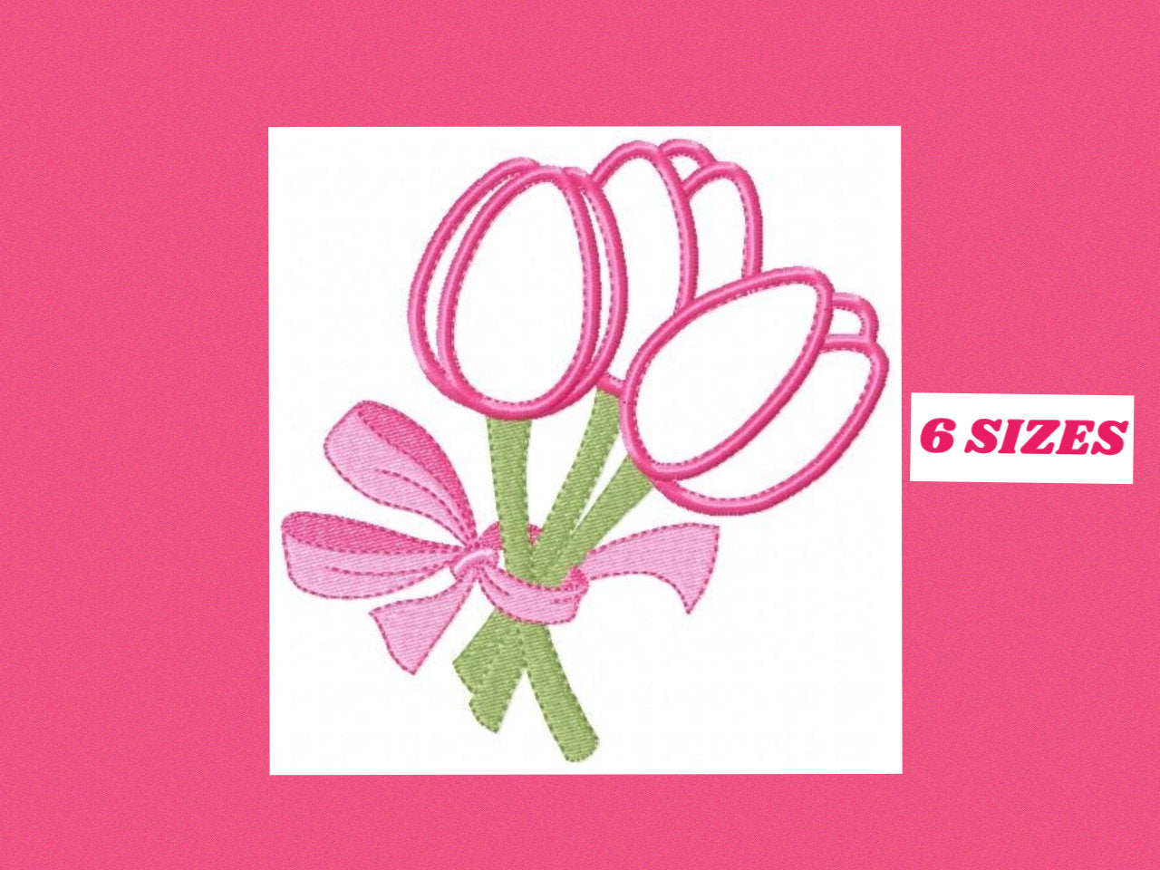 Flowers embroidery designs - Tulip Bouquet Applique machine embroidery pattern - Kitchen Towel Floral file - Instant digital download pes