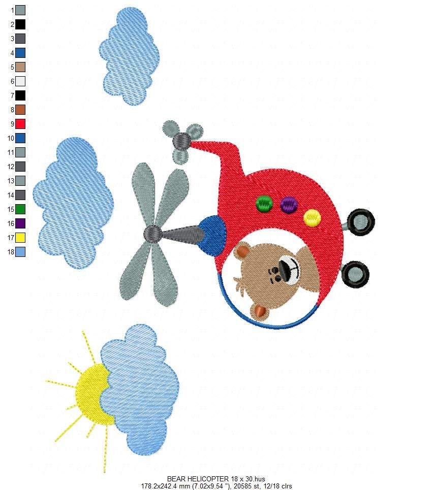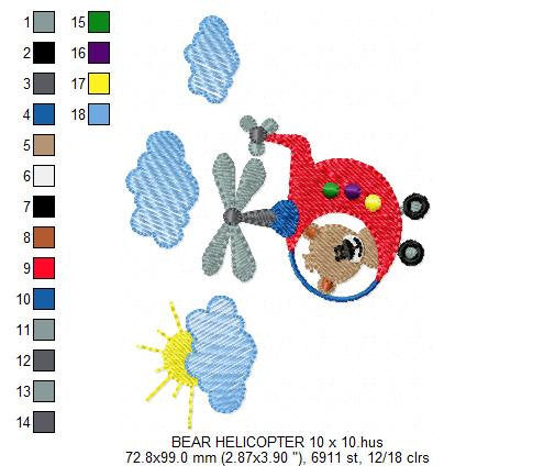 Helicopter embroidery designs - Bear embroidery design machine embroidery pattern - Baby boy embroidery file - Pilot bear design chopper