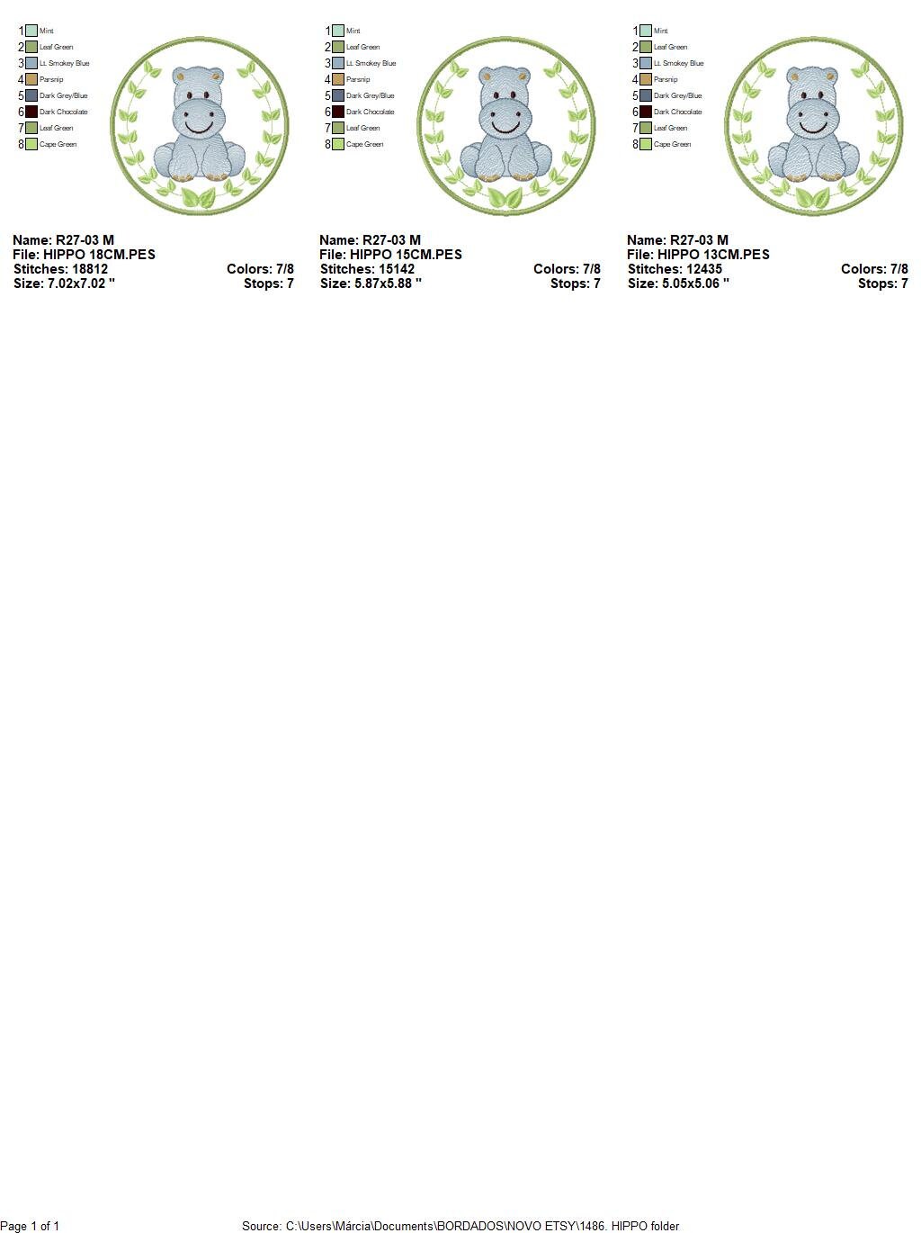 Hippo embroidery designs - Safari embroidery design machine embroidery pattern - Animal embroidery file - Hippo with applique frame pes jef