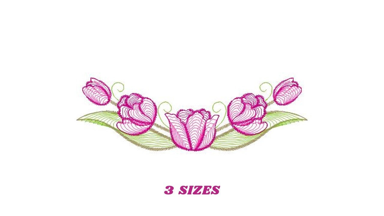 Tulip embroidery designs - Flower embroidery design machine embroidery pattern - Flower wreath laurel embroidery file - instant download pes