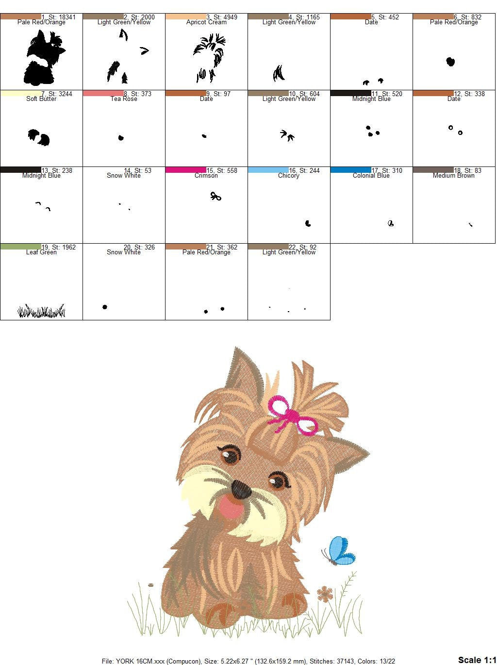 Yorkshire embroidery designs - Dog embroidery design machine embroidery pattern - Puppy embroidery file - Pet embroidery instant download