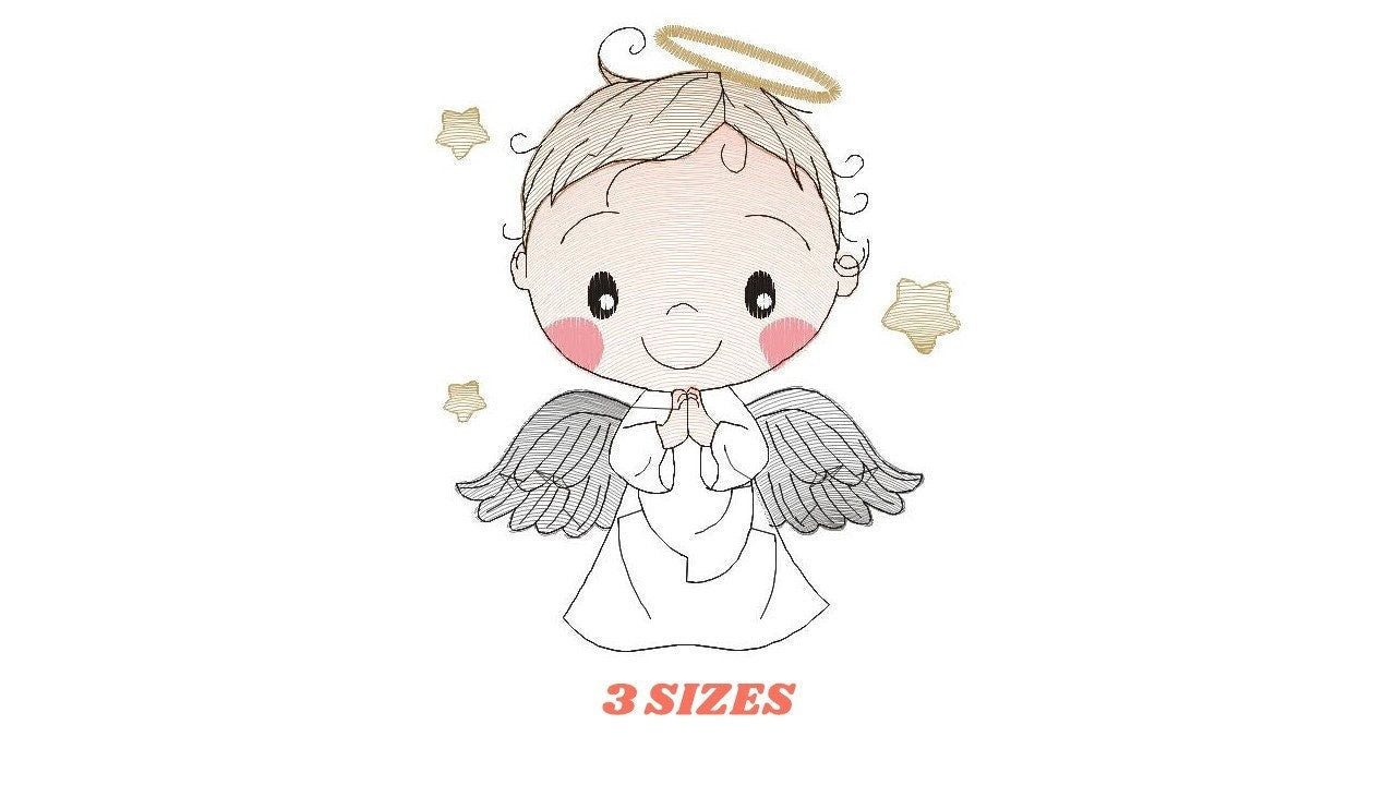 Angel embroidery designs - Baby boy embroidery design machine embroidery pattern - Boy with wings embroidery file - instant download pes jef