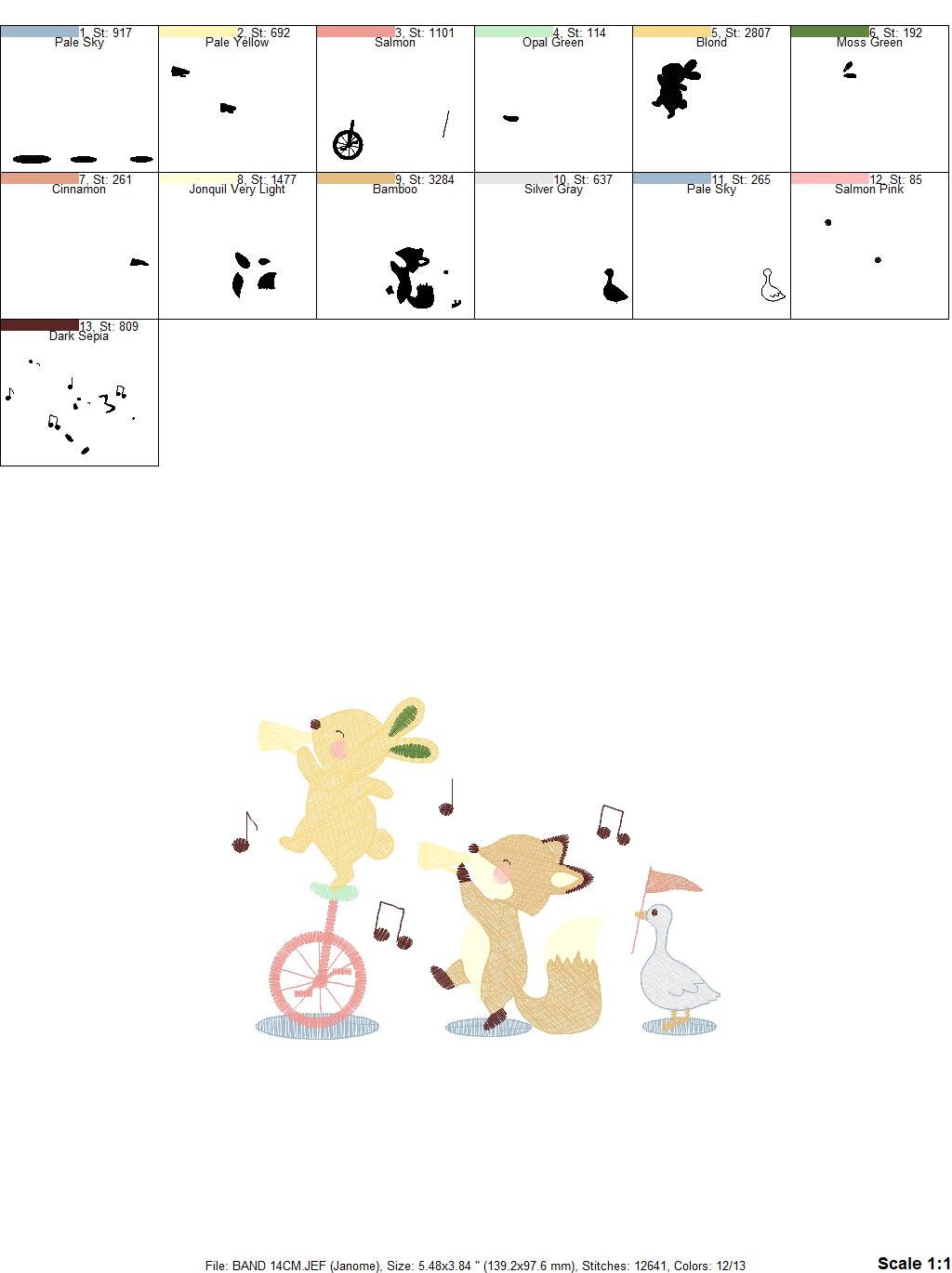 Animal band embroidery designs - Musical animals embroidery design machine embroidery pattern - Rabbit embroidery file - Fox and Rabbit