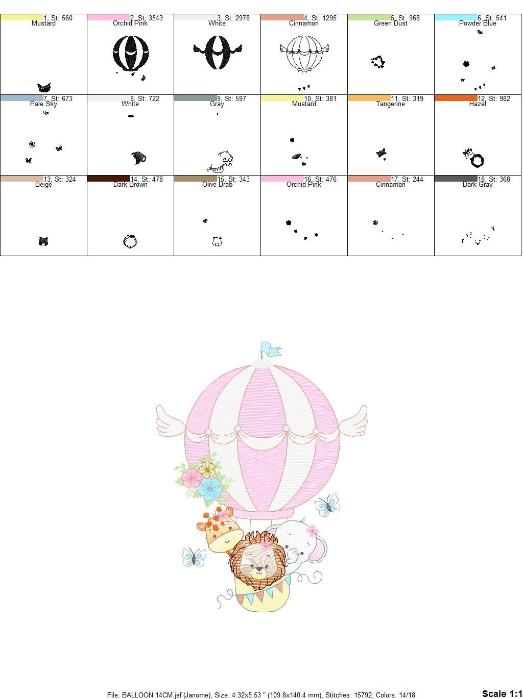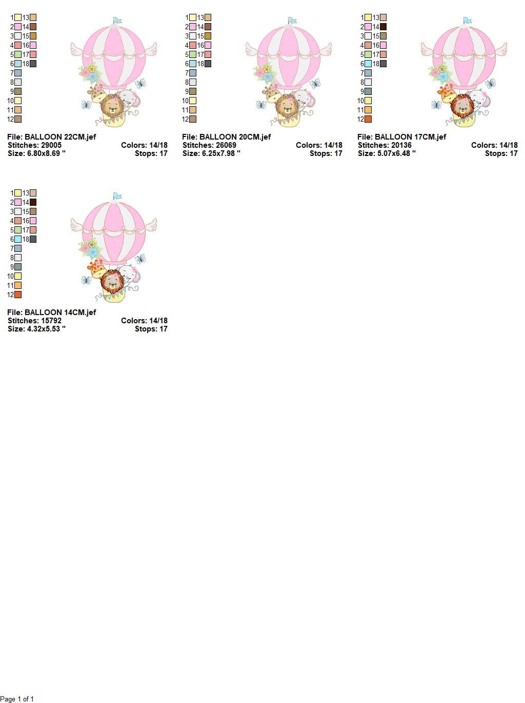 This is a digital download machine embroidery design of ANIMALS IN A HOT AIR BALLOON, rippled design, instant download.