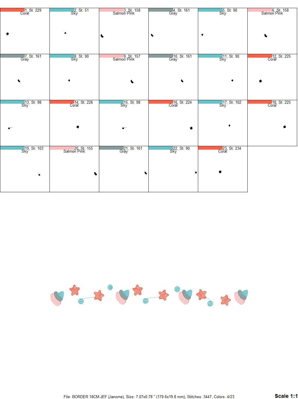 There is 1 size included for each design, please check the information under the pictures for the precise sizes of each design, stitch count, color changes and etc.