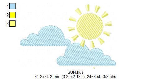 There are 3 sizes included, please check the information under the pictures for the precise sizes of each design, stitch count, color changes and etc.