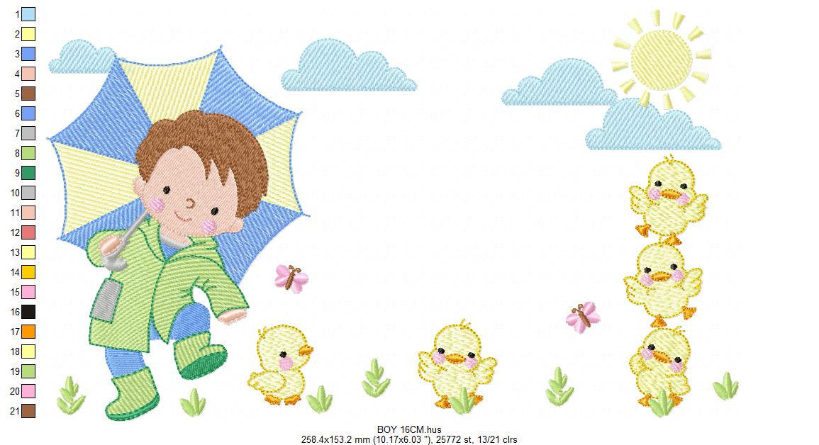 Baby boy with umbrella embroidery design - Duck family machine embroidery pattern - Boy with umbrella embroidery file - Instant download jef