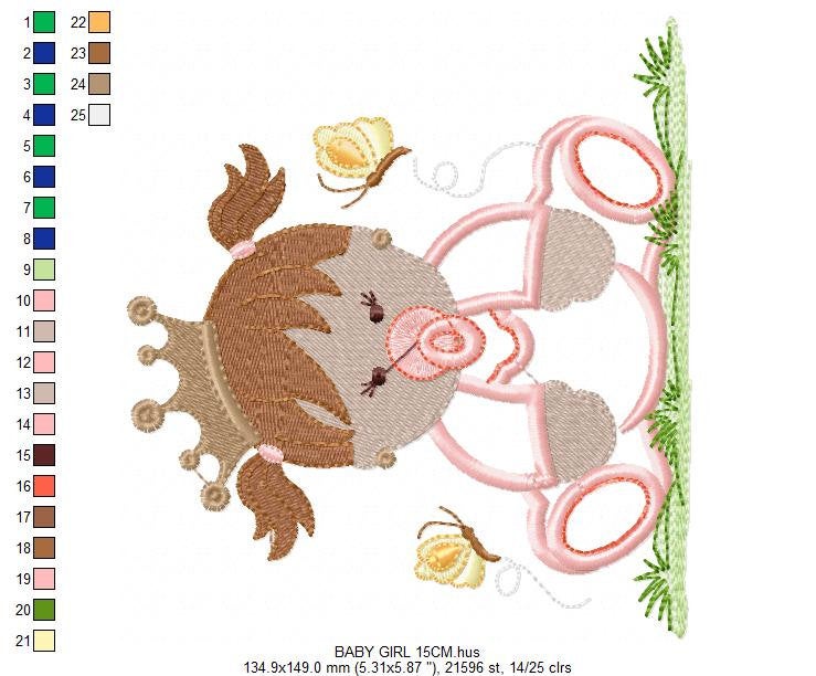 Baby girl embroidery design - Baby with crown embroidery design machine embroidery pattern - Toddler embroidery file - newborn nursery