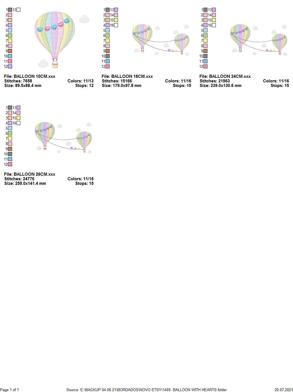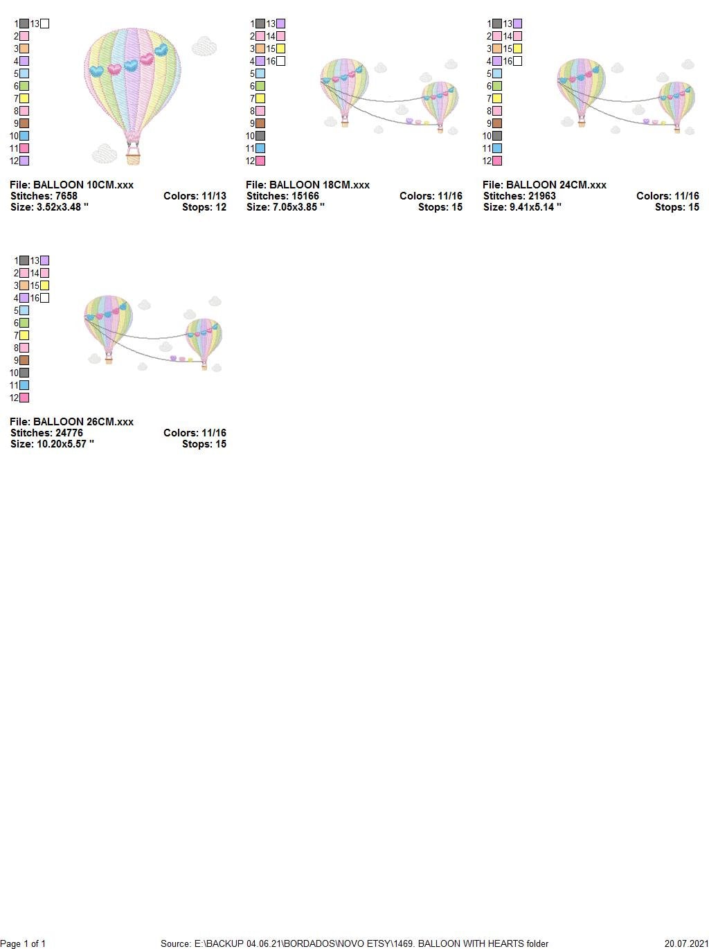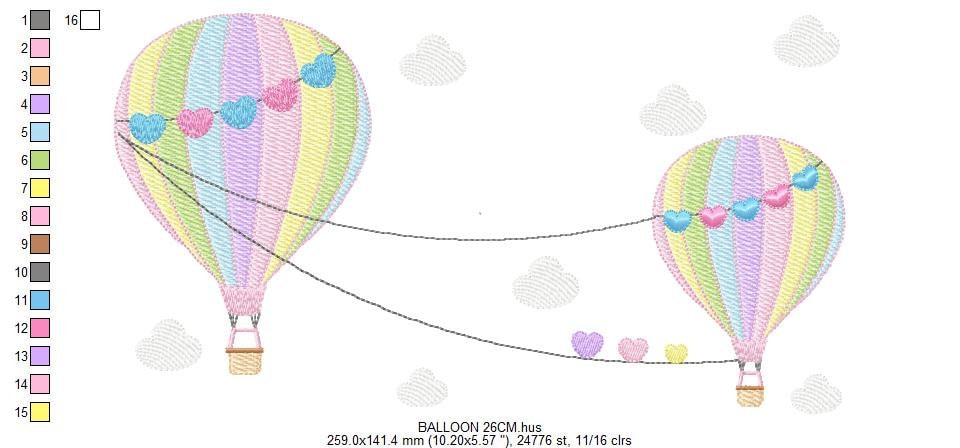 Ballon embroidery designs - Hot air balloon embroidery design machine embroidery pattern - Sky with clouds embroidery - instant download