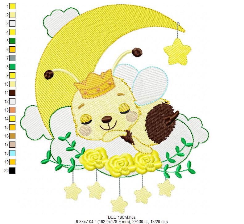 Bee embroidery design - Sleeping Bee embroidery designs machine embroidery pattern - Honey bee embroidery file - Save the bees download pes