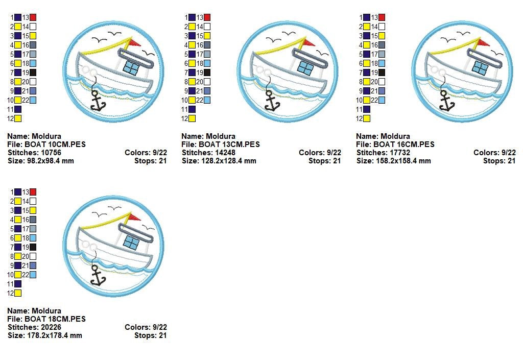 This is a digital download machine embroidery design of BOAT, applique design, instant download.