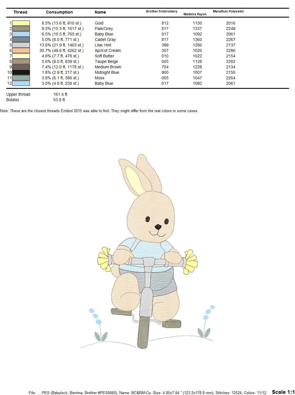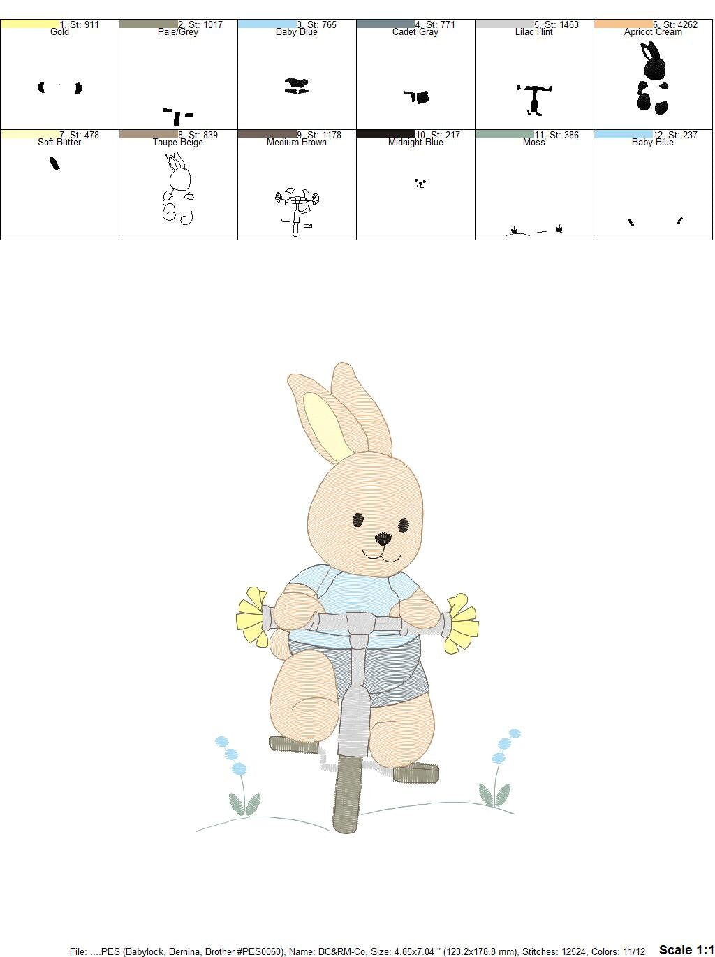 This is a digital download machine embroidery design of a BUNNY WITH A BIKE, rippled design, instant download.