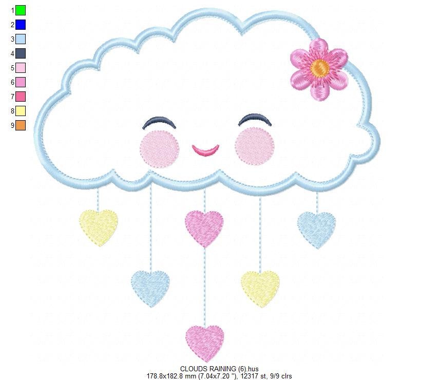 Cloud embroidery design - Rain of hearts machine embroidery pattern - Baby girl cloud applique with flower file - Instant download pes jef