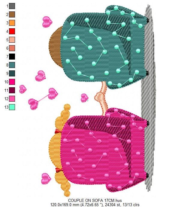 Couple on couch embroidery designs - Love Valentines embroidery design machine embroidery pattern - Boyfriend girlfriend - instant download