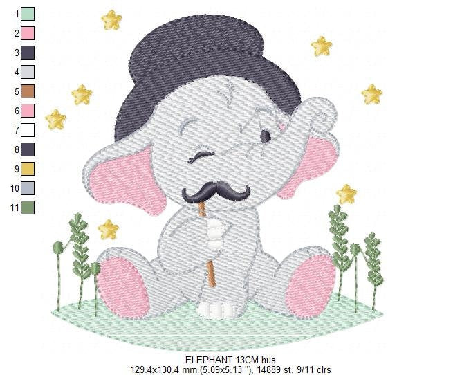 Elephant embroidery designs - Animal embroidery design machine embroidery pattern - Baby Boy embroidery file - Elephant top hat mustache