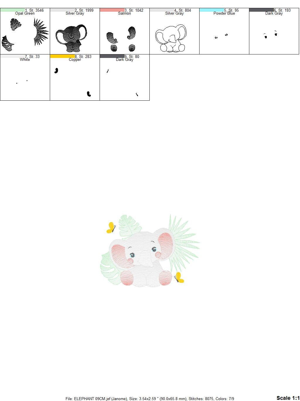 Elephant embroidery designs - Elephant and leaves embroidery design machine embroidery pattern - Safari Animal embroidery - instant download