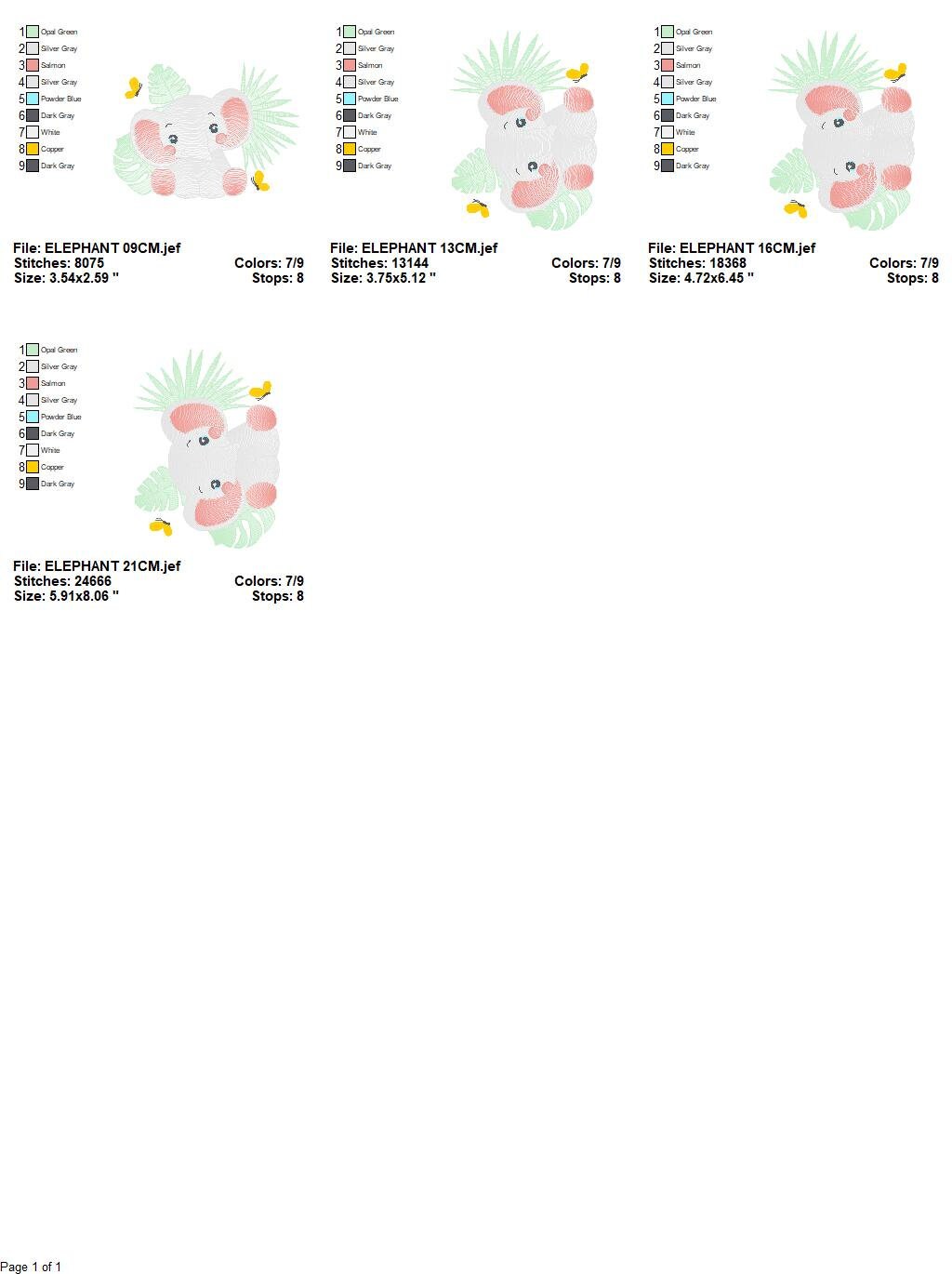 There are 4 size included for each design, please check the information under the pictures for the precise sizes of each design, stitch count, color changes and etc.