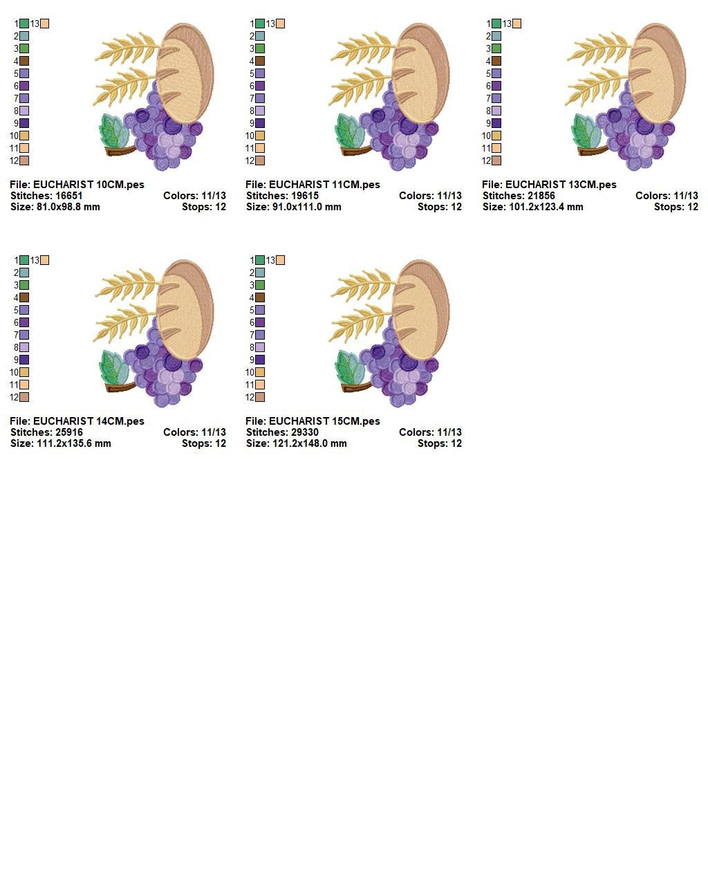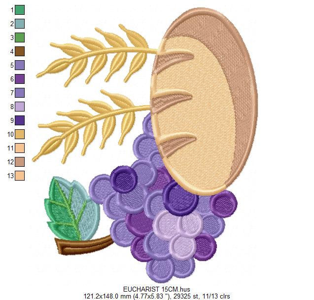 Eucharist embroidery designs - Communion embroidery design machine embroidery pattern - Catholic embroidery file - Grape Bread Wheat church