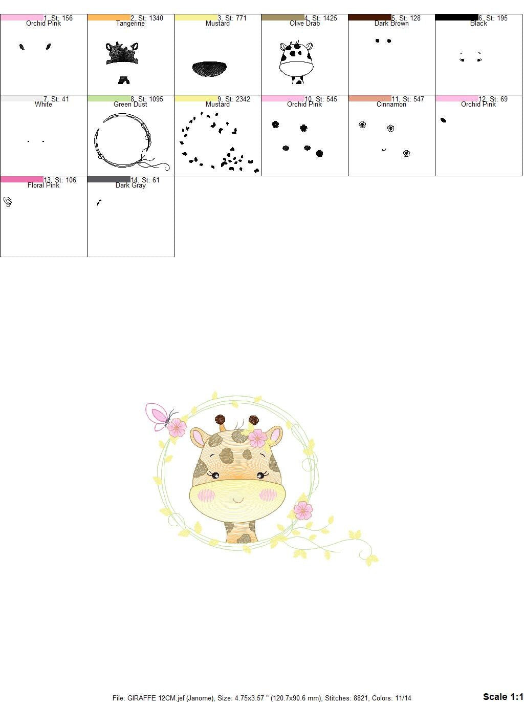 Giraffe embroidery designs - Safari animals embroidery design machine embroidery pattern - Baby girl embroidery file - instant download pes