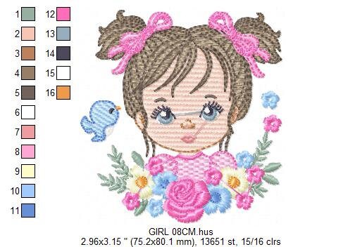 Girl embroidery designs - Flower girl embroidery design machine embroidery pattern - girl with flowers embroidery file butterfly embroidery