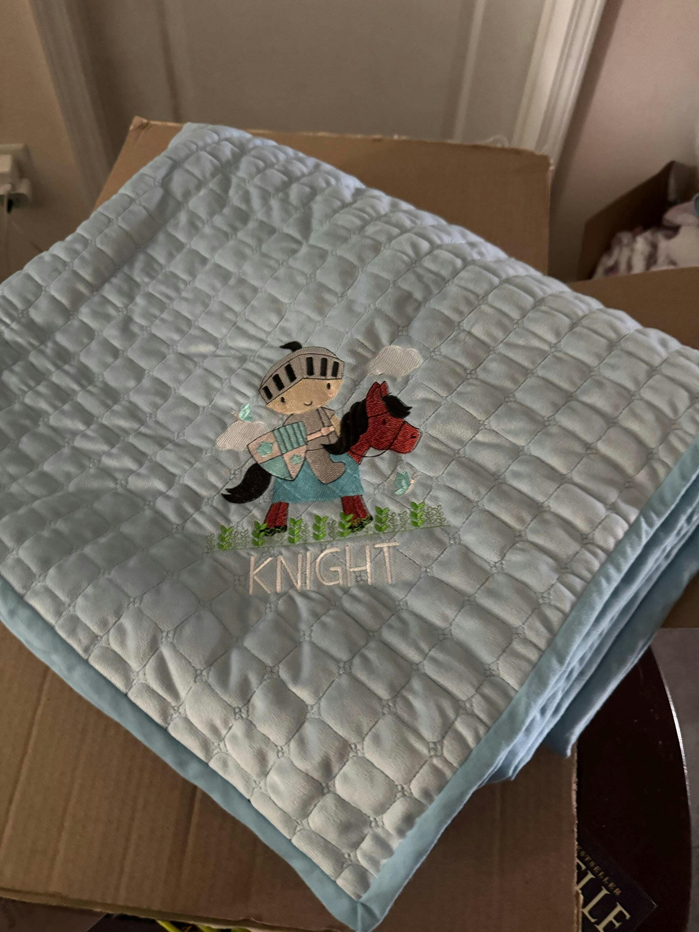 Zelda I put this design on a baby blanket for my grandson who is named Knight. It came out beautifully!!!