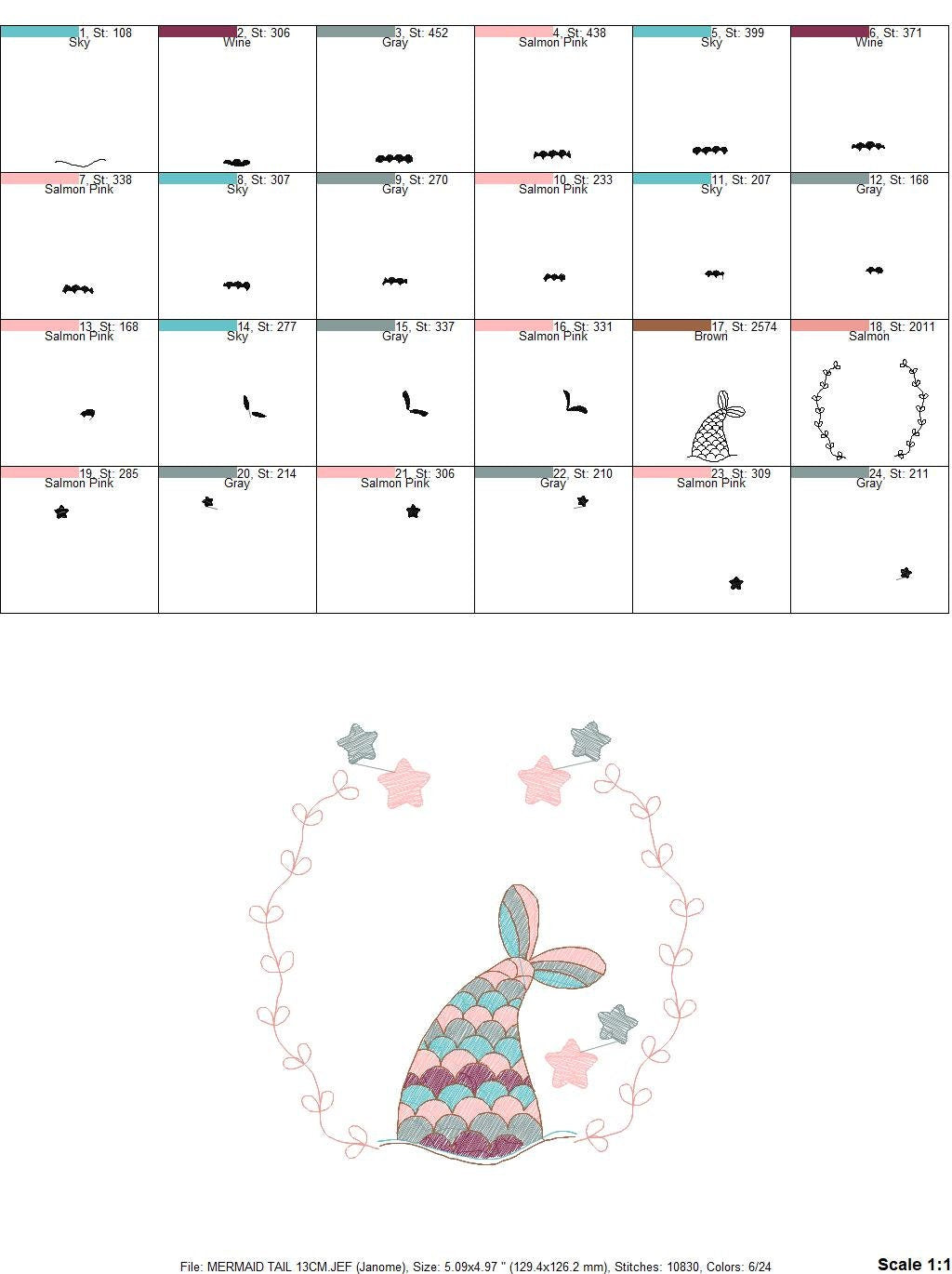 This is a digital download machine embroidery design of a MERMAID TAIL, RIPPLED design, instant download.