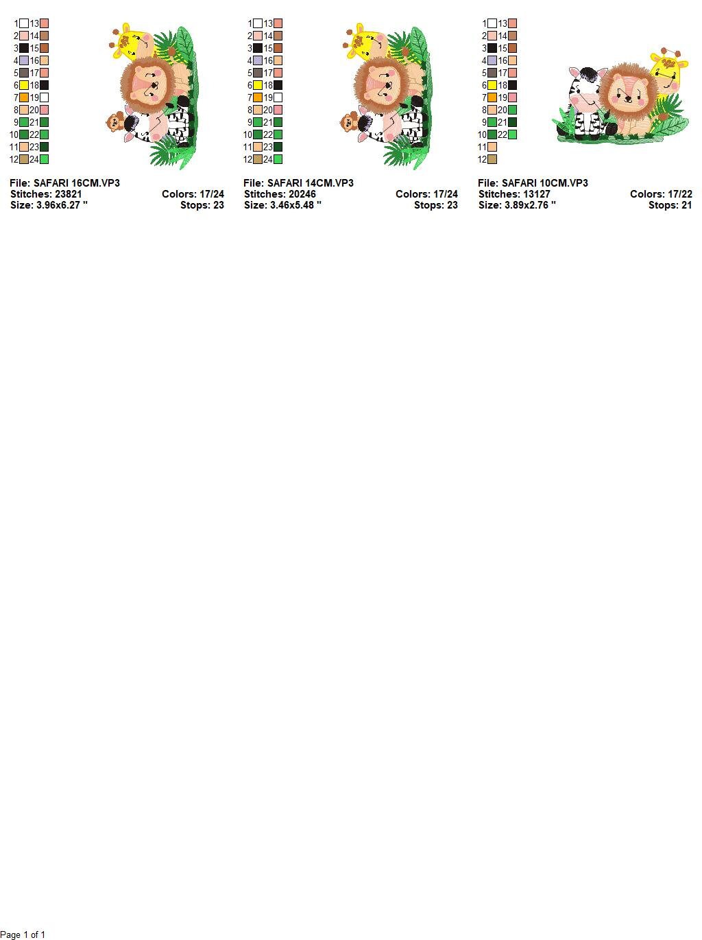 There are 3 sizes included for each design, please check the information under the pictures for the precise sizes of each design, stitch count, color changes and etc.