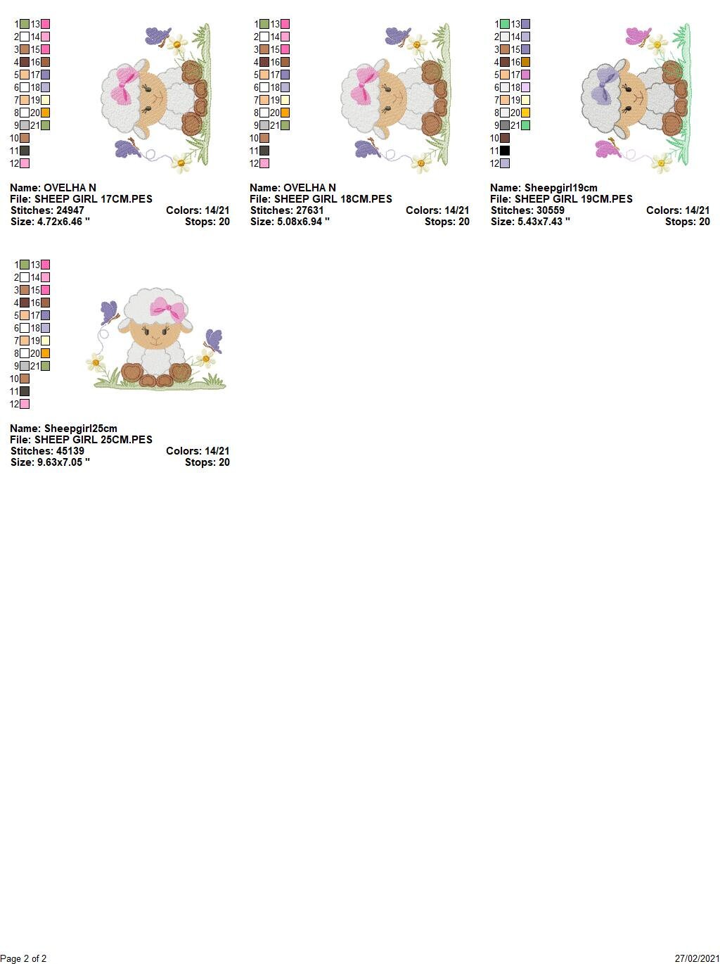 There are 8 sizes included for each design, please check the information under the pictures for the precise sizes of each design, stitch count, color changes and etc.