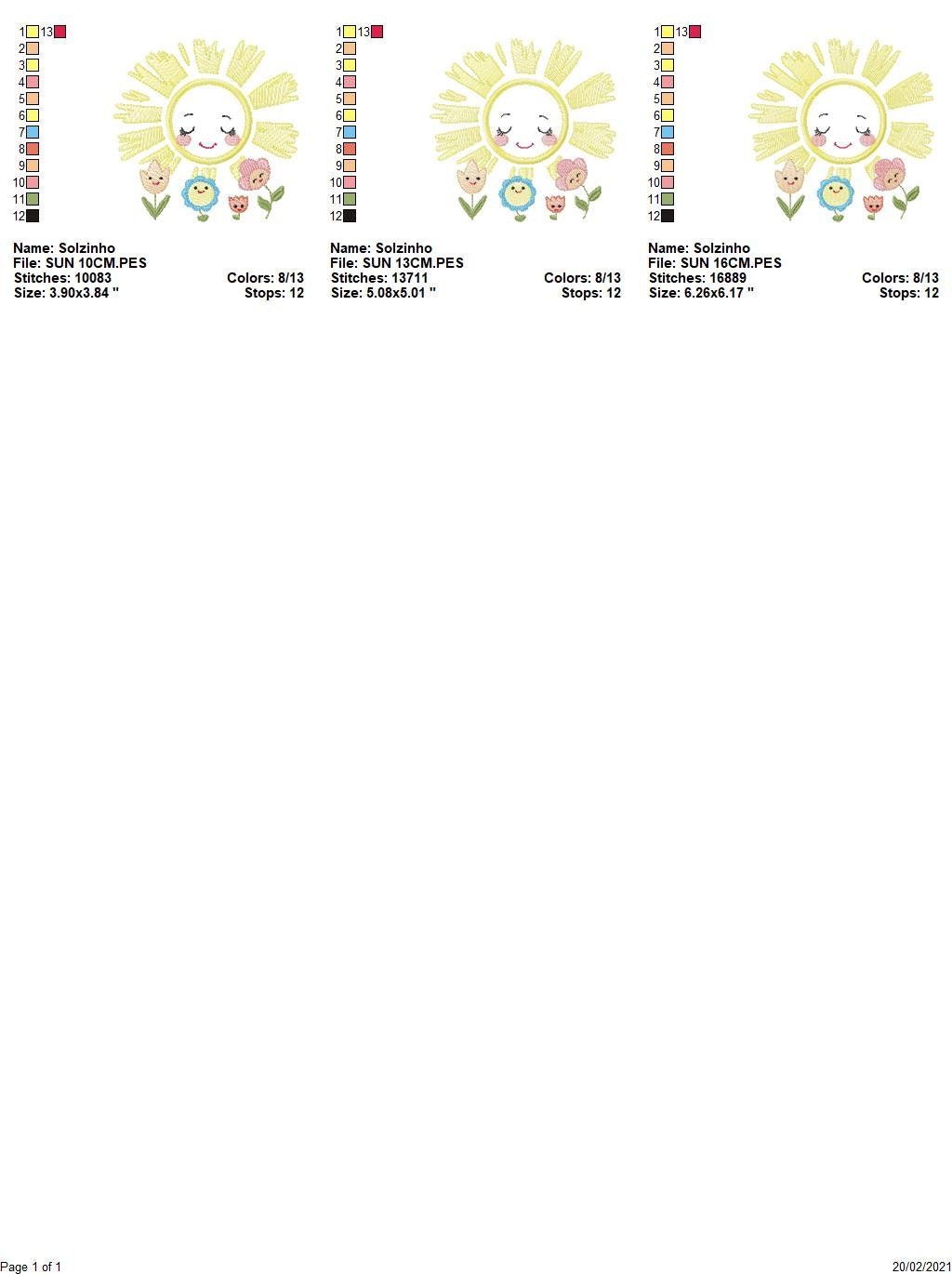 There are 3 sizes included for each design, please check the information under the pictures for the precise sizes of each design, stitch count, color changes and etc.