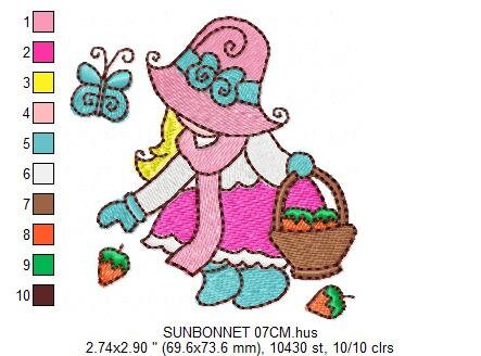 This is a digital download machine embroidery design of a SUNBONNET, instant download, applique design.
