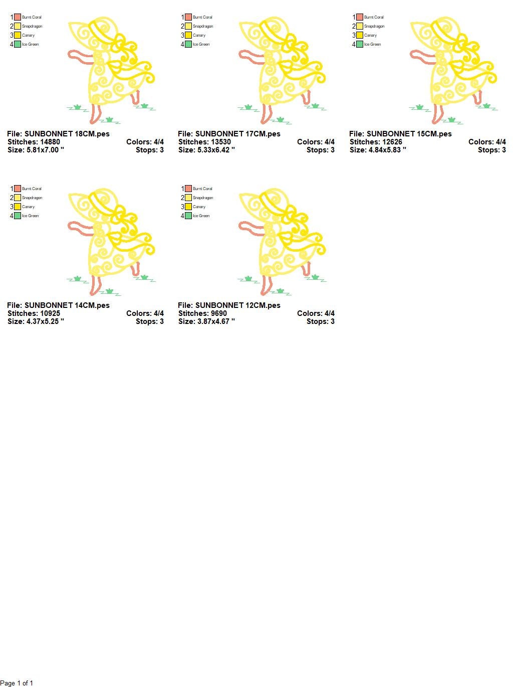 This is a digital download machine embroidery design of a SUNBONNET, rippled design (NOT AN APPLIQUE), instant download.