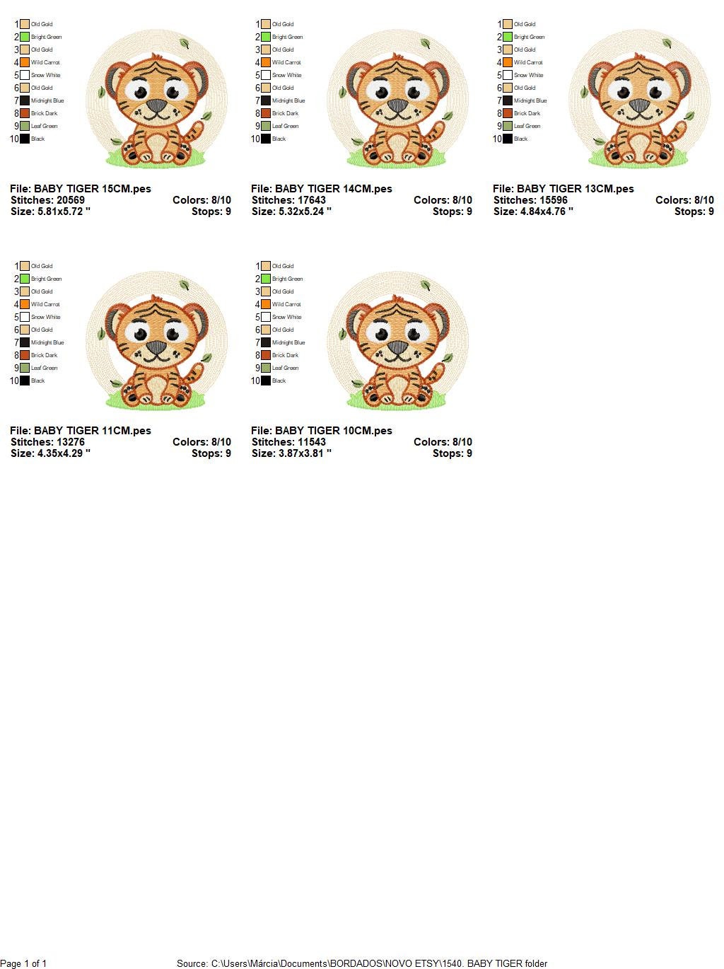 There are 5 sizes included for each design, please check the information under the pictures for the precise sizes of each design, stitch count, color changes and etc.