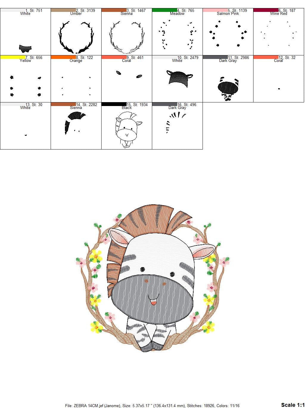 Zebra embroidery designs - Safari embroidery design machine embroidery pattern - Animal embroidery download - Zebra with frame pes jef hus